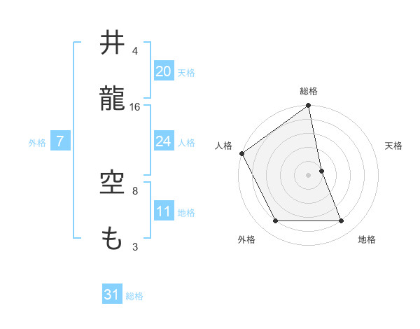 井龍 空もさんの総格は31画の5点!