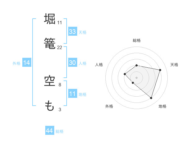 堀篭 空もさんを姓名の画数から五運を鑑定