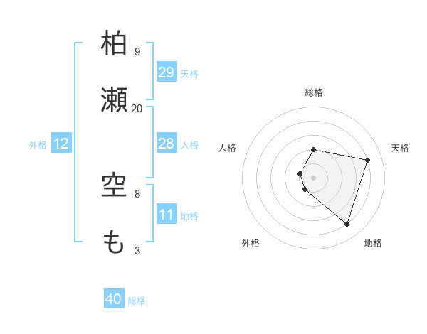 柏瀬 空もさんを姓名の画数から五運を鑑定