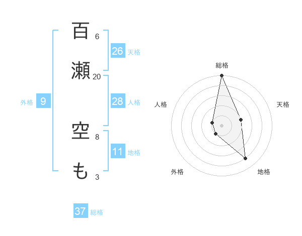 百瀬 空もさんの総格は37画の5点!