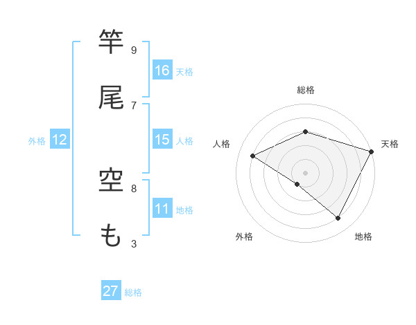 竿尾 空もさんの天格は16画の5点!