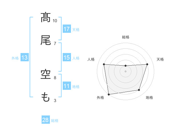 髙尾 空もさんを姓名の画数から五運を鑑定
