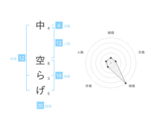 中 空らげさんの地格は16画の5点!
