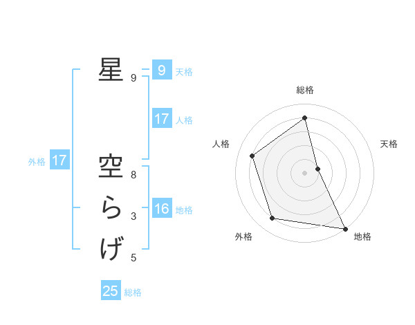 星 空らげさんの地格は16画の5点!