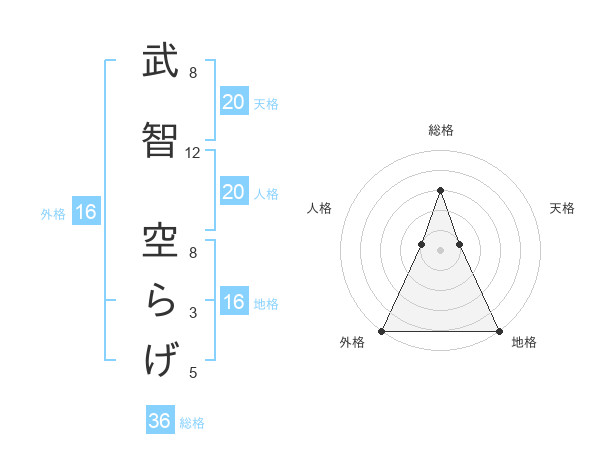 武智 空らげさんの外格は16画の5点!
