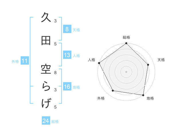 久田 空らげさんの地格は16画の5点!