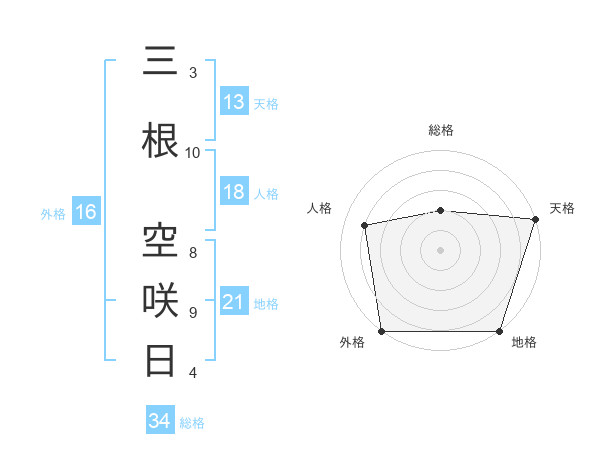 三根 空咲日さんの総格は34画の2点!