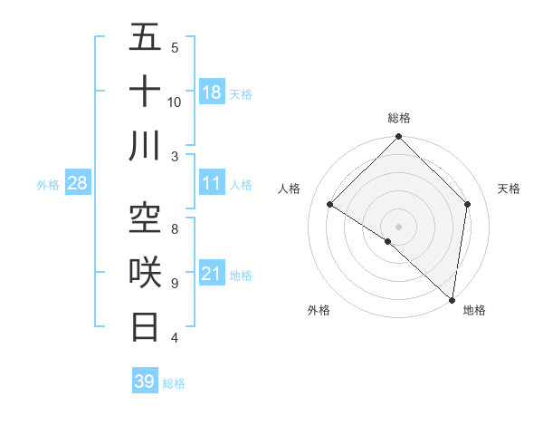 五十川 空咲日さんの総格は39画の5点!