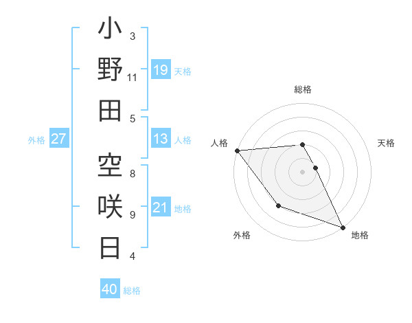 小野田 空咲日さんを姓名の画数から五運を鑑定