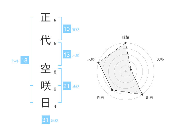 正代 空咲日さんを姓名の画数から五運を鑑定