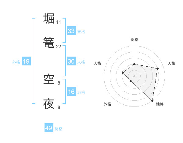 堀篭 空夜さんの総格は49画の2点!
