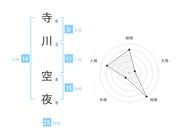 寺川 空夜さんを姓名の画数から五運を鑑定