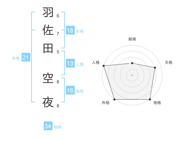 羽佐田 空夜さんを姓名の画数から五運を鑑定