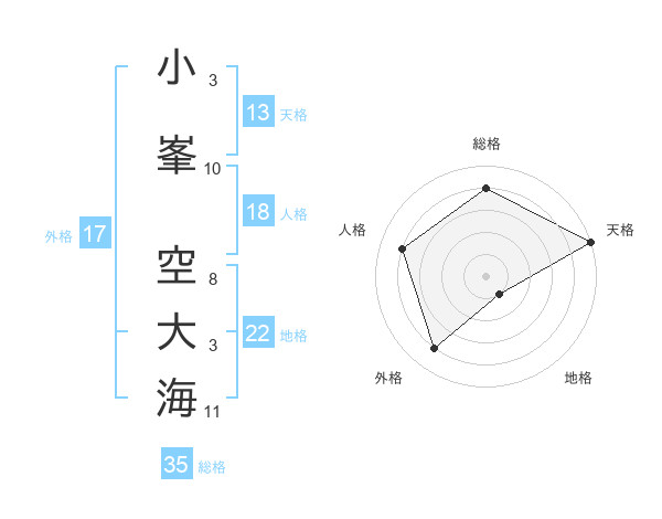 小峯 空大海さんを姓名の画数から五運を鑑定