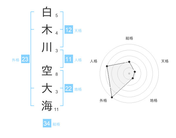 白木川 空大海さんを姓名の画数から五運を鑑定