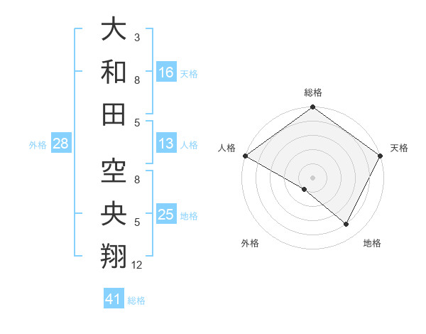 大和田 空央翔さんの天格は16画の5点!