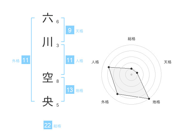 六川 空央さんの地格は13画の5点!