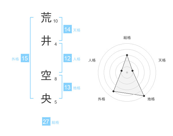 荒井 空央さんの総格は27画の3点!