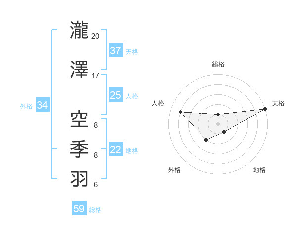 瀧澤 空季羽さんの天格は37画の5点!