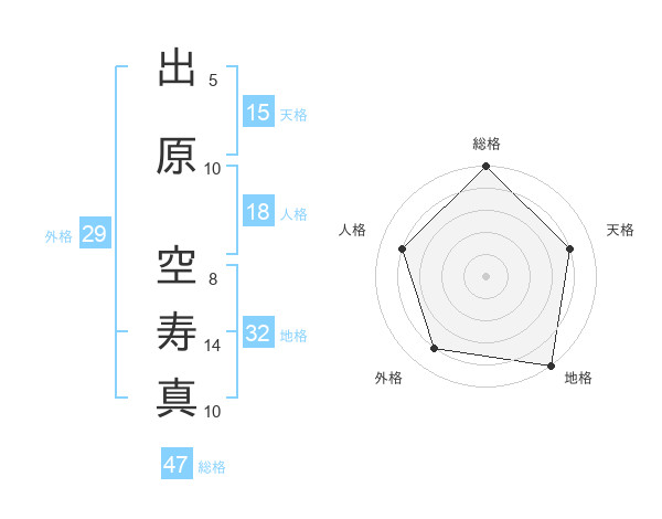出原 空寿真さんの総格は47画の5点!