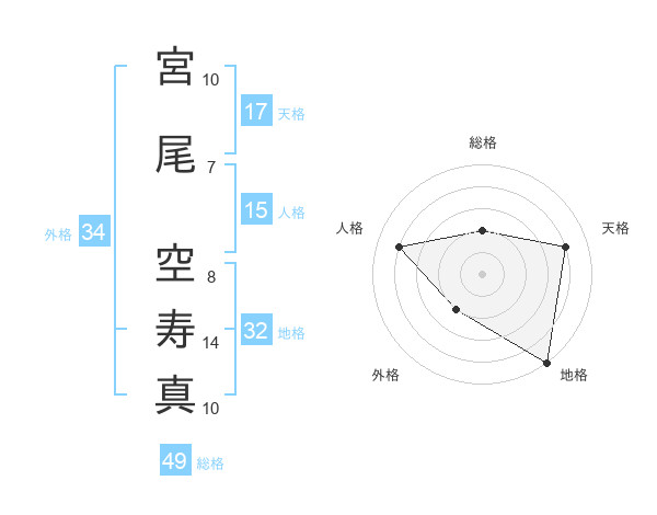 宮尾 空寿真さんの天格は17画の4点!