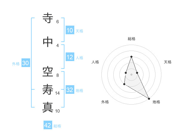 寺中 空寿真さんを姓名の画数から五運を鑑定