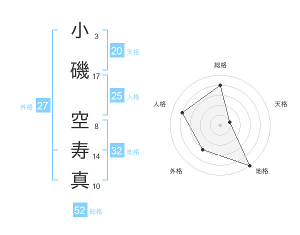 小磯 空寿真さんの総格は52画の4点!