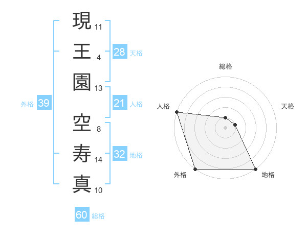現王園 空寿真さんの総格は60画の1点!