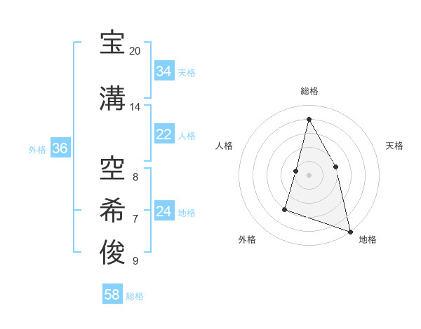 宝溝 空希俊さんの総格は58画の4点!