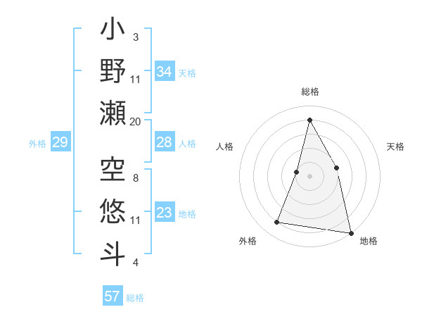 小野瀬 空悠斗さんの総格は57画の4点!