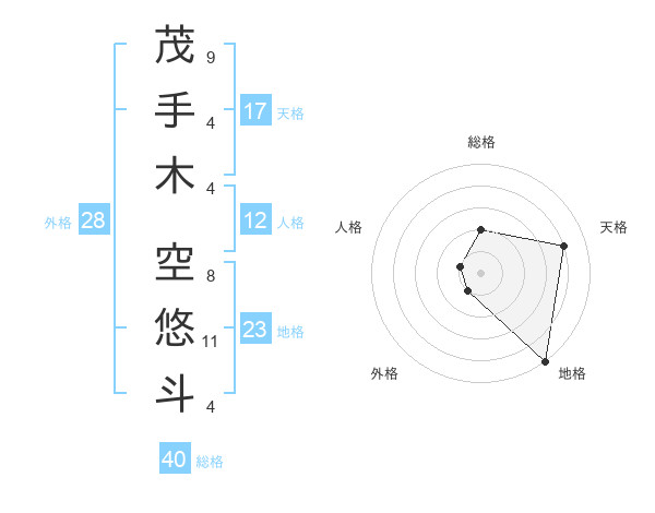 茂手木 空悠斗さんの天格は17画の4点!