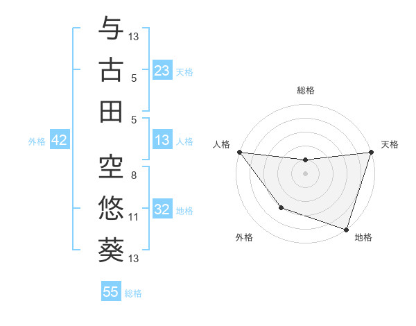 与古田 空悠葵さんを姓名の画数から五運を鑑定
