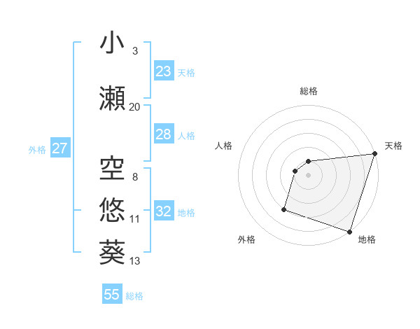 小瀬 空悠葵さんを姓名の画数から五運を鑑定