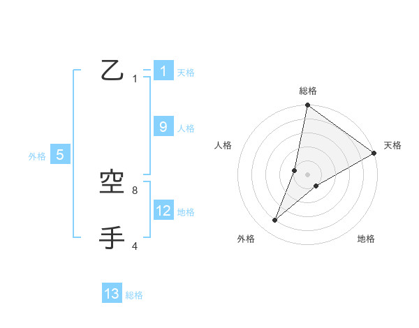 乙 空手さんの総格は13画の5点!