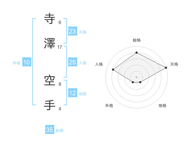 寺澤 空手さんの天格は23画の5点!