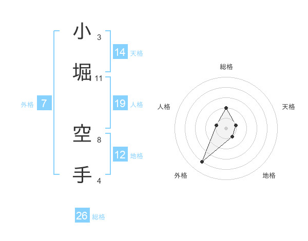 小堀 空手さんの総格は26画の2点!