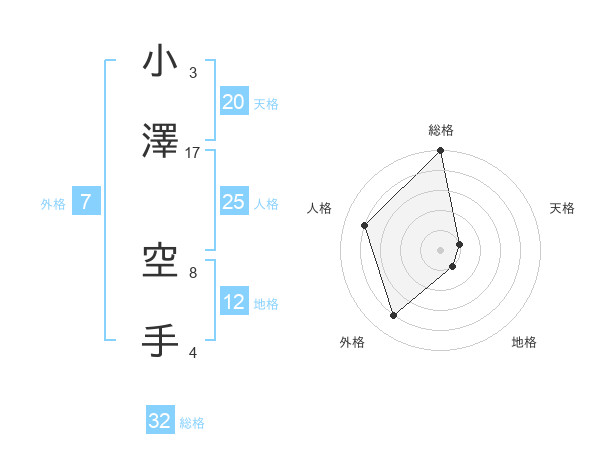 小澤 空手さんの天格は20画の1点!