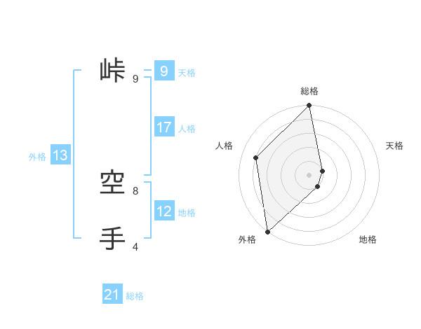 峠 空手さんの外格は13画の5点!
