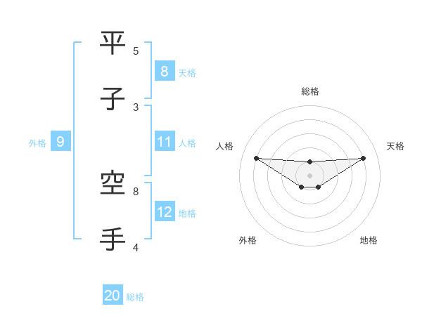 平子 空手さんの総格は20画の1点!