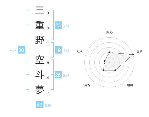 三重野 空斗夢さんを姓名の画数から五運を鑑定