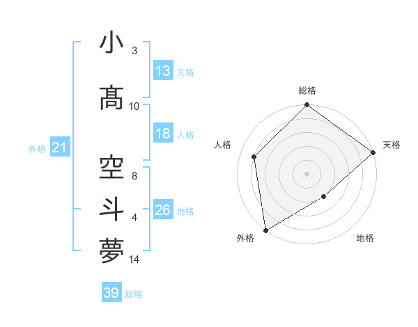 小髙 空斗夢さんを姓名の画数から五運を鑑定