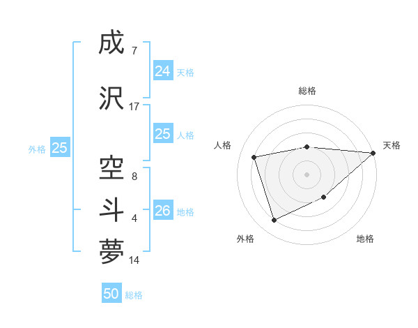 成沢 空斗夢さんを姓名の画数から五運を鑑定