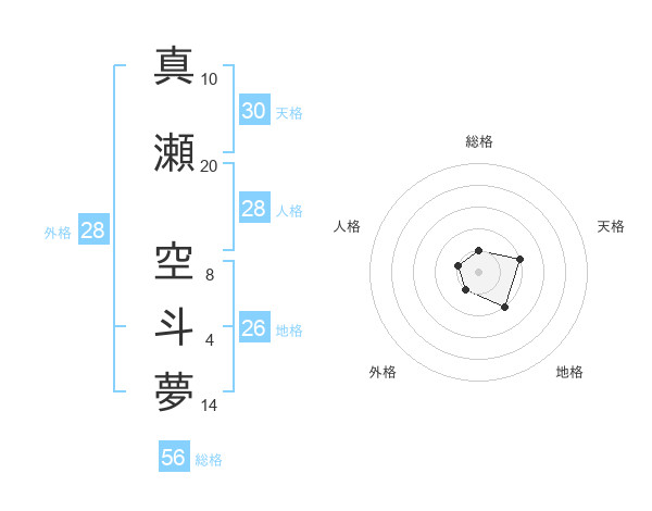 真瀬 空斗夢さんを姓名の画数から五運を鑑定