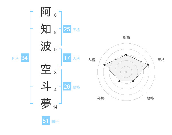 阿知波 空斗夢さんを姓名の画数から五運を鑑定