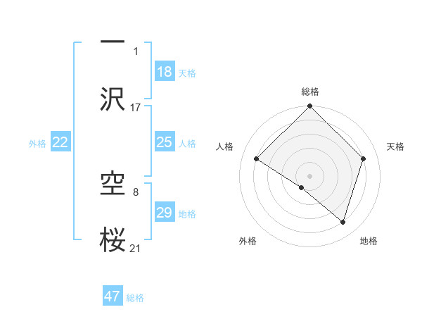 一沢 空桜さんを姓名の画数から五運を鑑定