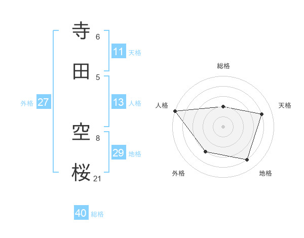 寺田 空桜さんを姓名の画数から五運を鑑定