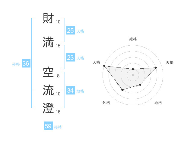 財満 空流澄さんを姓名の画数から五運を鑑定