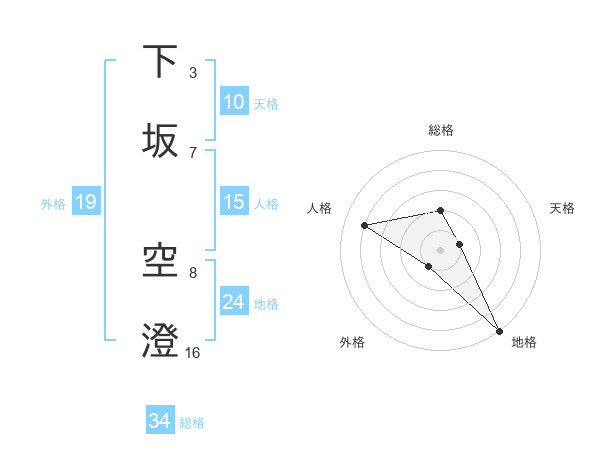 下坂 空澄さんの総格は34画の2点!