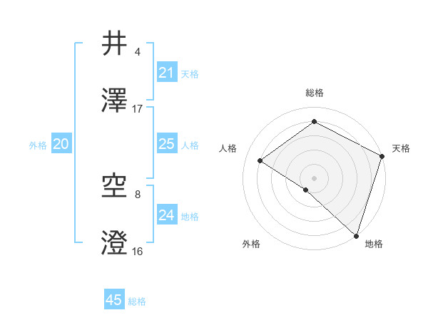 井澤 空澄さんの総格は45画の4点!