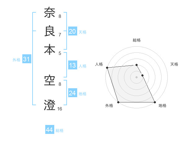 奈良本 空澄さんの総格は44画の2点!